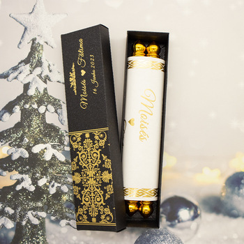 Design creativo Nicro in stile reale lamina d'oro che timbra scatola unica di carta da imballaggio con nappine rotolo di carta per inviti a nozze